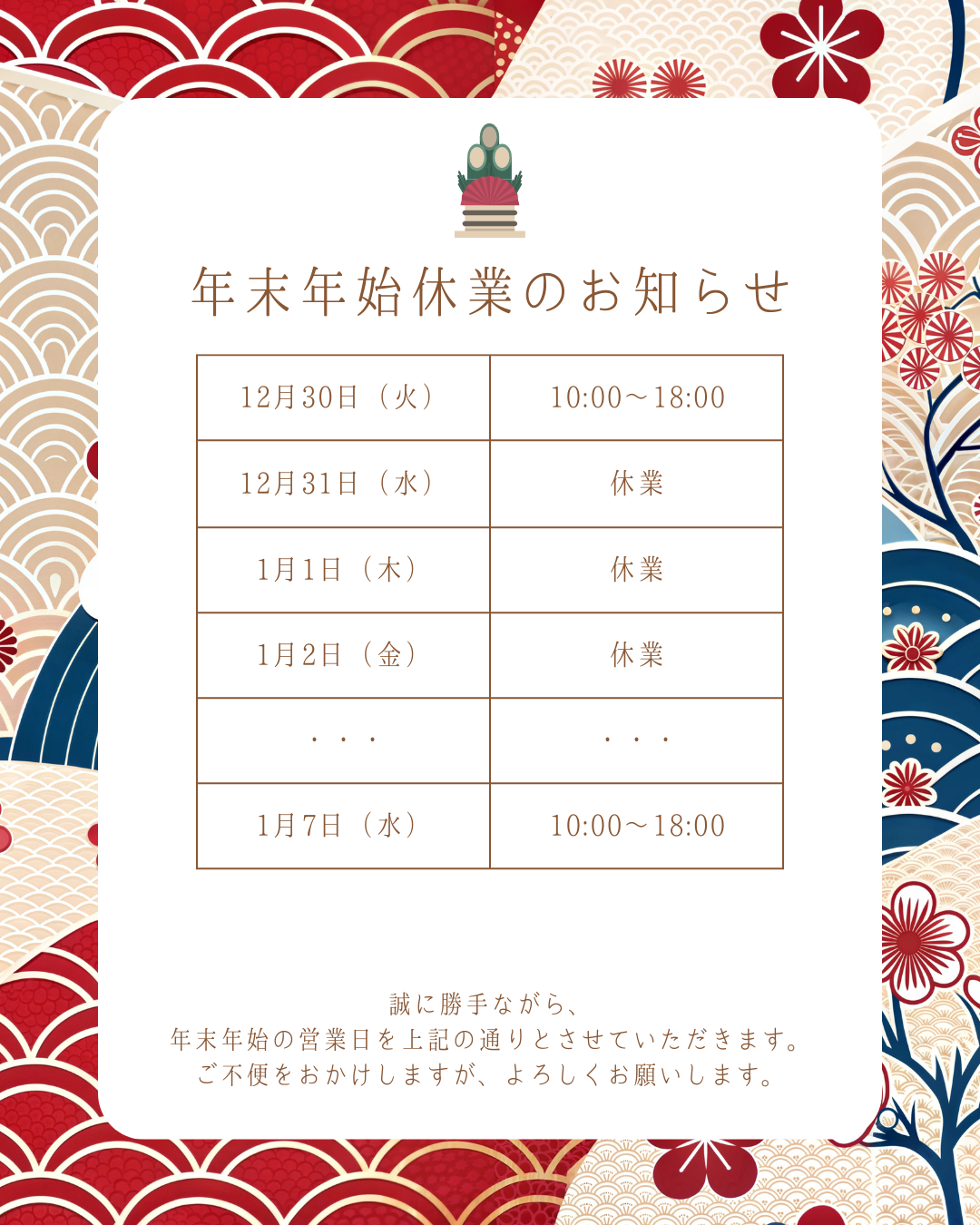 年内発送につきまして、オンラインでの受付はすでに終了しておりますが、ご希望の商品によっては配送が可能なものもございます。
